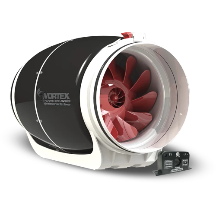 S-Line Mixed Flow Fans are designed for residential and light commercial ventilation applications. These compact, powerful, and quiet fans are available in 6 in., 8 in. and 10 in. duct diameters and are ideally suited for either supply or exhaust ventilation systems. The fan and motor are precisely balanced for a quiet and vibration-free operation.This Vortex Powerfan kit includes a 711 CFM S-800 inline blower, for 8 in. Dia duct, and a current sensor that will automatically turn on and off the Vortex Powerfan S-800 inline blower as required.